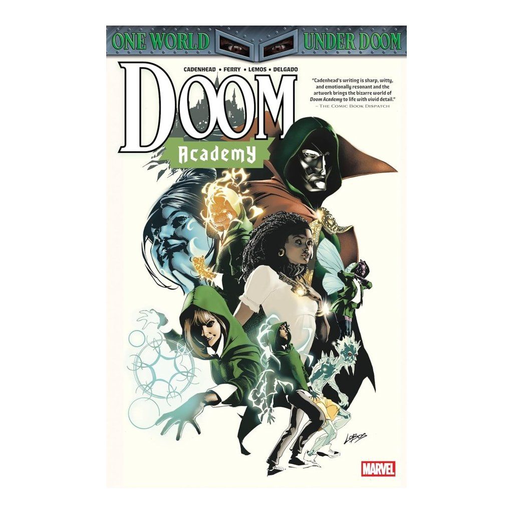 Did you think Strange Academy would magically stay the same in a world where Doctor Doom reigns as Sorcerer Supreme?! Of course not! It's now Doom Academy! Relocated from New Orleans to Latveria , the best school of wizardry there ever was just got better (according to some). But as the students start their second year in greatly changed surroundings, you know things will not go as planned! When Zoe Laveau gets sucked into a fairy-tale book filled with childhood monsters, her friends and frenemies start the search for her – but find something far more troubling! What horrors lurk in this fantasy land, and what do they have to do with Doctor Doom?! Collecting DOOM ACADEMY (2025) #1-5.