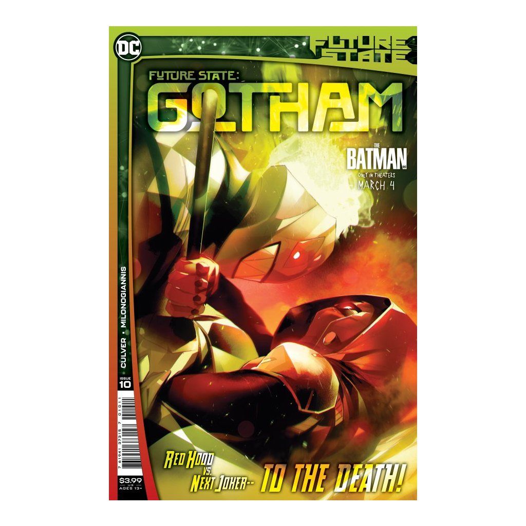 Jason Todd, a.k.a. Peacekeeper Red, and Hunter Panic are helpless to do anything but watch as the new Batman battles his greatest enemy for the first time! Meanwhile, the secret villain who has been the mastermind behind everything since the beginning of Future State: Gotham makes a move that will have repercussions for the entire Bat-Family!