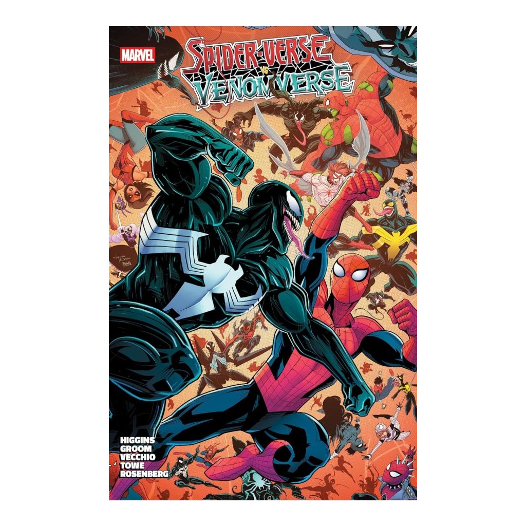 Spider-Man and his spider-compatriots across the Spider-Verse are the guardians of the Web of Life and Destiny, but they're heading for a confrontation with the other arachnid-Multiverse of the symbiote variety! But from the point of view of Venom and his variants, the symbiote hive mind of the entire Venomverse must be defended from their Spider-y counterparts! It's 'Verse vs. 'Verse – and no reality will ever be the same...including ours! With the fates of realities hanging in the balance, Spider-Man, Venom and their respective allies clash in a spectacular, symbiotic slobberknocker! Starring fan-favorite variants and new sensations!