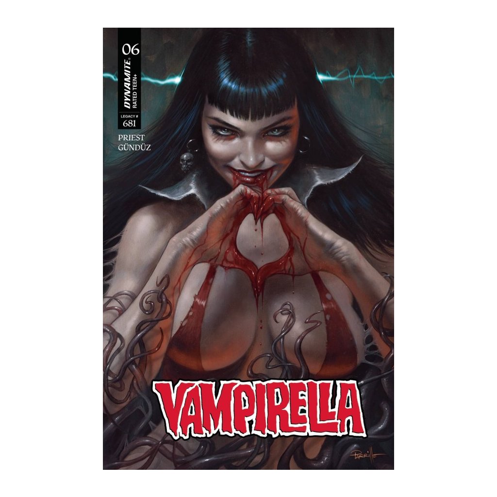 Master tale-weavers CHRISTOPHER PRIEST and ERGÜN GÜNDÜZ conclude their saga of "The Long Night" in Vampirella #6 — augmented by outlandishly appealing covers from LUCIO PARRILLO, GREG LAND, MEGHAN HETRICK, ELIAS CHATZOUDIS, and cosplay by RACHEL HOLLON!